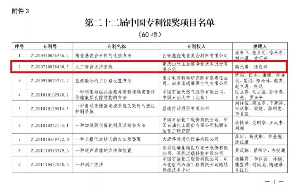 SWS-5000系列血液凈化設(shè)備榮獲"第二十二屆中國(guó)專利銀獎(jiǎng)