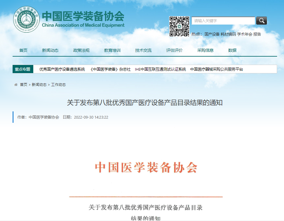優(yōu)秀國(guó)產(chǎn)醫(yī)療設(shè)備產(chǎn)品遴選工作是在國(guó)家衛(wèi)生健康委員會(huì)規(guī)劃與信息司委托下,由中國(guó)醫(yī)學(xué)裝備協(xié)會(huì)遴選,按照覆蓋面廣、用量大、具有一定市場(chǎng)占有率和競(jìng)爭(zhēng)力、用戶反應(yīng)好、對(duì)降低醫(yī)療成本有顯著作用等要求進(jìn)行評(píng)選,評(píng)選結(jié)果客觀體現(xiàn)了入選企業(yè)的真實(shí)實(shí)力,同時(shí)進(jìn)一步促進(jìn)國(guó)產(chǎn)醫(yī)療器械品牌化的發(fā)展。