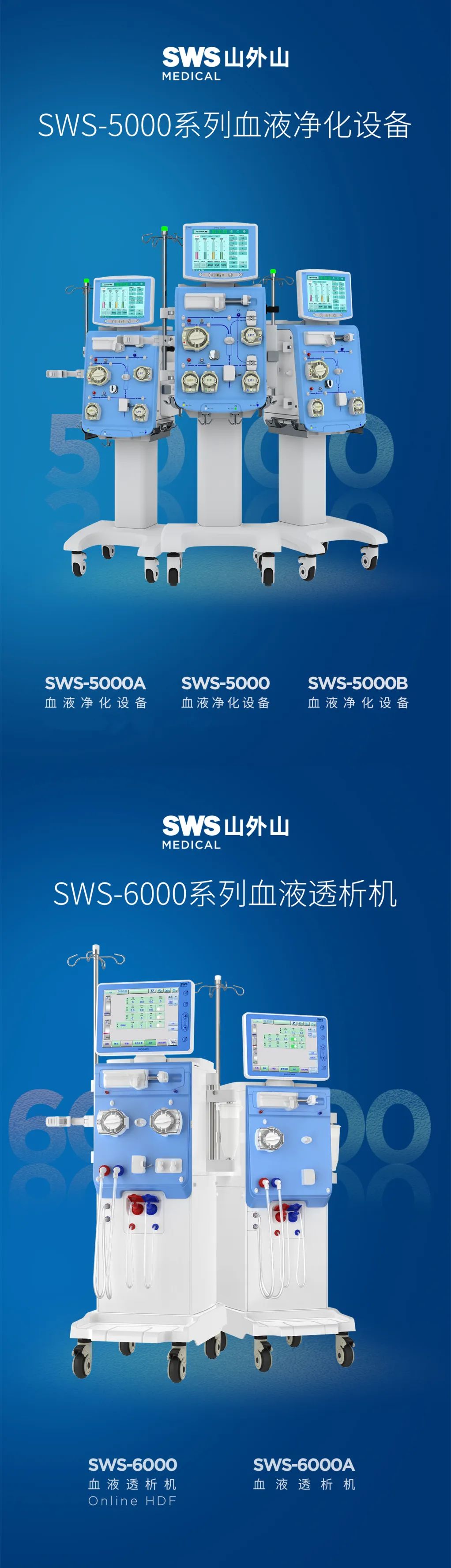 值得注意的是,除開之前上榜的SWS-2000A血液灌流機(jī)、SWS-4000、SWS-6000系列血液透析機(jī),在此次遴選結(jié)果目錄中,山外山公司最新一代產(chǎn)品SWS-5000系列血液凈化設(shè)備也強(qiáng)勢(shì)上榜,這意味著山外山公司的全系列血液凈化設(shè)備獲得市場(chǎng)的高度認(rèn)可。