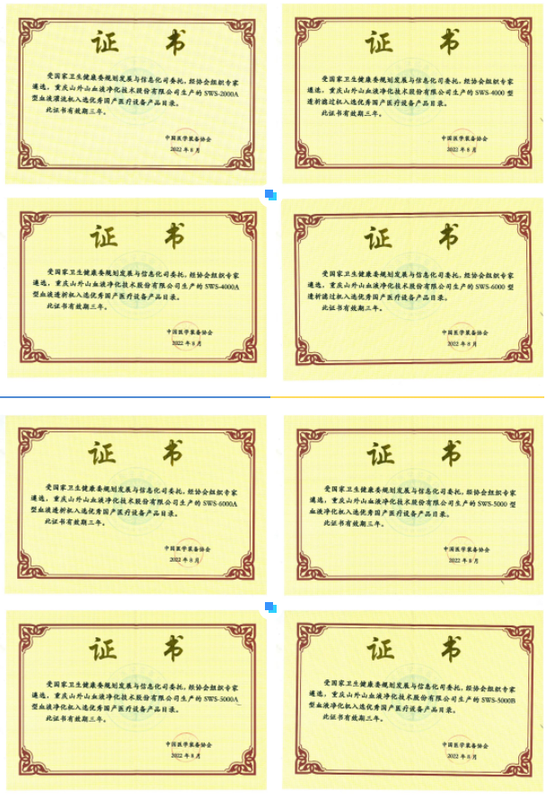此前,SWS-5000系列血液凈化設(shè)備還憑借優(yōu)良的質(zhì)量、先進(jìn)的技術(shù)和強(qiáng)大的血液凈化功能,被中國(guó)醫(yī)療器械裝備協(xié)會(huì)納入防疫重點(diǎn)物資目錄,并榮獲“第二十二屆中國(guó)專利銀獎(jiǎng)(排名第二)”。此次又成功入選第八批優(yōu)秀國(guó)產(chǎn)醫(yī)療設(shè)備產(chǎn)品目錄,足以彰顯山外山公司產(chǎn)品的卓越品質(zhì)和強(qiáng)勁實(shí)力。