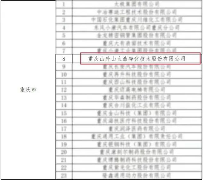 經(jīng)測評、初核、審核等程序,重慶山外山血液凈化技術股份有限公司(以下簡稱“山外山公司”)通過復核,繼續(xù)持有“國家知識產(chǎn)權(quán)示范企業(yè)”稱號。