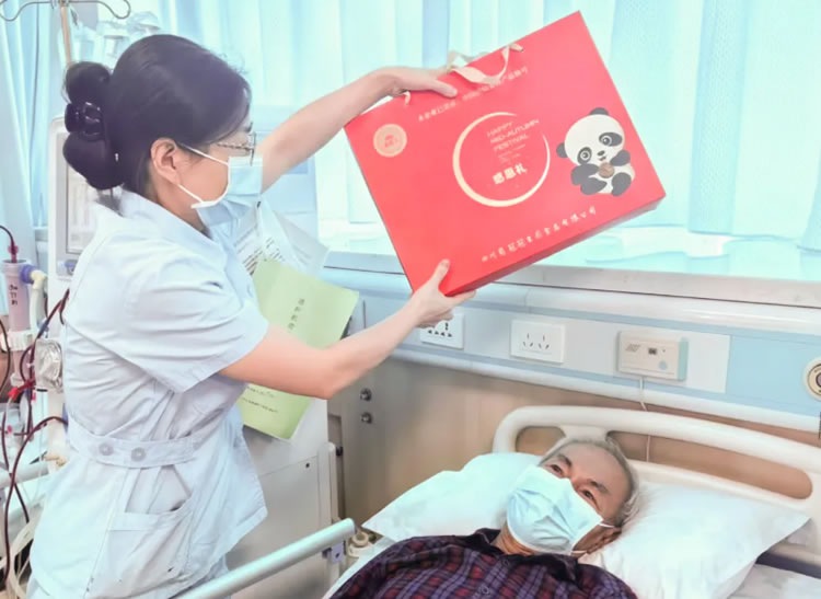 此外,中秋佳節(jié)將至,為了讓Fong先生感受到節(jié)日的喜悅,山外山血液透析門診部為其送上了月餅禮盒。月餅寄語團圓,雖然只是一份小小的心意,卻能讓Fong先生感受到家的溫暖。伴隨著一聲聲“中秋快樂”的真摯祝福,門診部里充滿了歡聲笑語,場面溫馨,其樂融融。