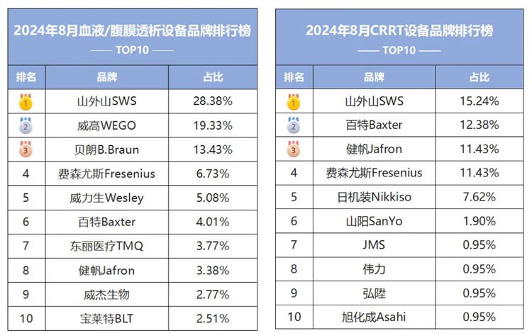 科技創(chuàng)新打造核心競爭力——科技創(chuàng)新是山外山公司超越競爭對手,成為全球一流血透品牌最核心的武器。今年8月,山外山血液透析機和連續(xù)性血液凈化設(shè)備(CRRT)的市場占有率排名雙雙登頂,繼2023年8月后,再次斬獲血液凈化行業(yè)“雙冠王”。其中,山外山連續(xù)性血液凈化設(shè)備(CRRT)還獲得2023年度行業(yè)同類產(chǎn)品中市占率第一名。強大的研發(fā)能力和深厚的技術(shù)沉淀,保證了山外山公司的產(chǎn)品性能的先進和質(zhì)量的穩(wěn)定,在市場上形成了核心競爭力。