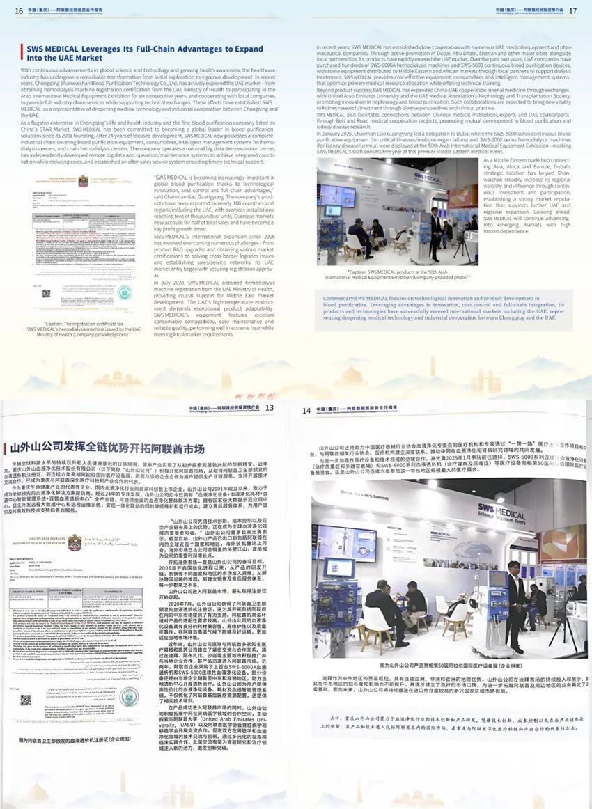 會(huì)上,雙方將在經(jīng)濟(jì)、科技、教育等12個(gè)領(lǐng)域建立常態(tài)化合作機(jī)制,預(yù)計(jì)帶動(dòng)超百億元投資。值得關(guān)注的是,作為重慶生命健康產(chǎn)業(yè)的代表性企業(yè),重慶山外山血液凈化技術(shù)股份有限公司憑借在阿聯(lián)酋市場的深度布局與創(chuàng)新實(shí)踐,成為中國(重慶)和阿聯(lián)酋經(jīng)貿(mào)合作的八個(gè)核心案例之一。